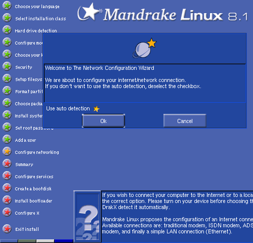 若按下 "Cancel"(取消) ,則意指本系統沒有網路設備或等到安裝完成後再設定網路。