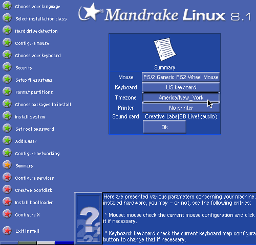 安裝程式會依照你選擇的安裝語言來決定你的時區,若不正確,請選擇 "Timezone" (時區) 來更正。(Asia/Taiwan)