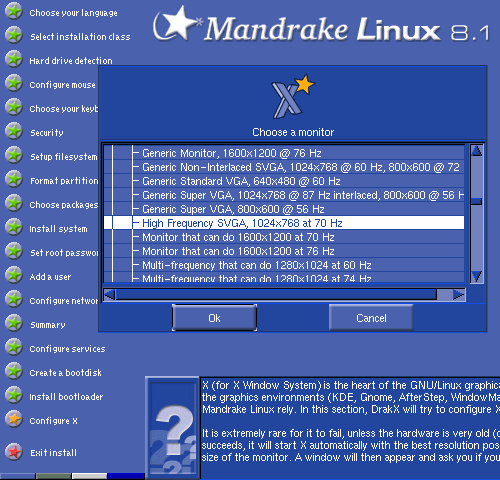 若你的裝置沒被自動辨識到,你必須自行指定螢幕或顯示卡的種類。
