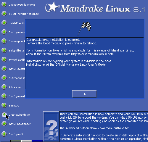 若要製作開機片請選擇左邊 Panel 的 "Create a bootdisk" (製作開機片)。