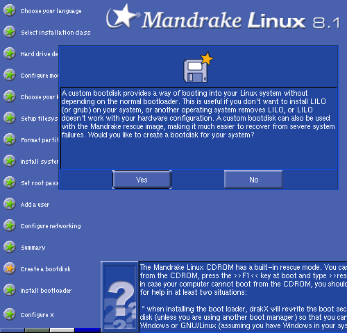 (譯注:用開機光碟開機後按 F1 依指示鍵入 linux rescue 也是一樣的。)